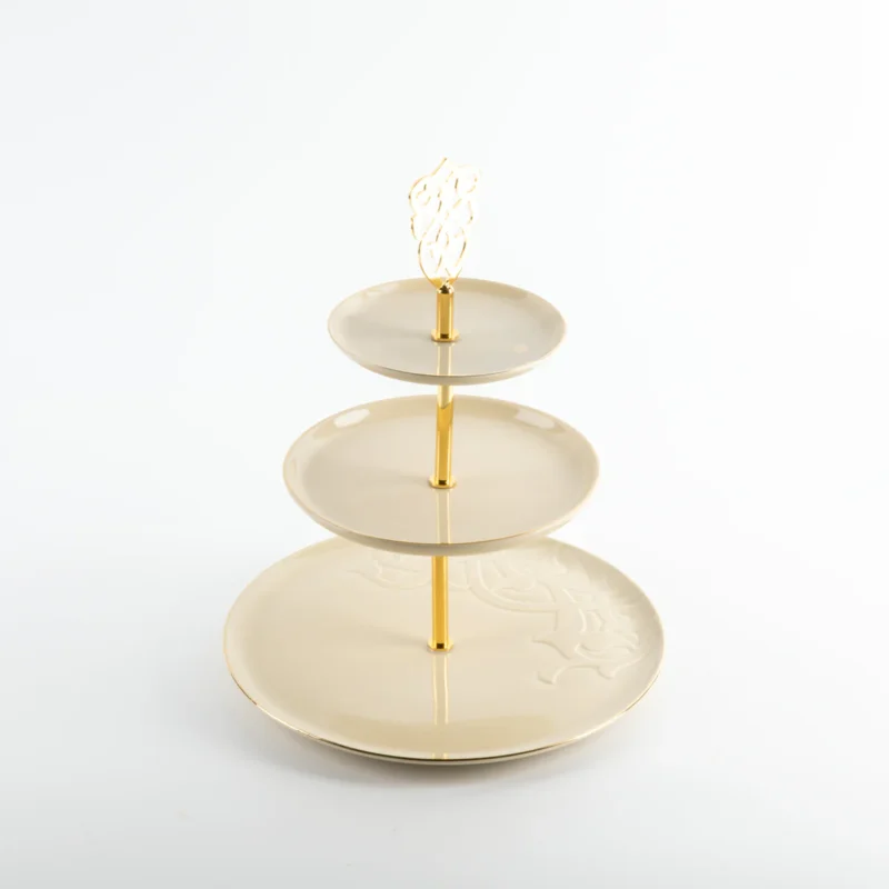 Com um design luxuoso e estrutura em camadas, ele é perfeito para apresentar doces, petiscos e sobremesas de forma elegante, aproveitando melhor o espaço da sua mesa.