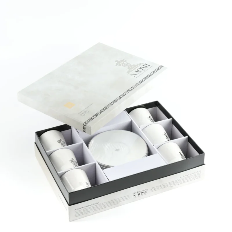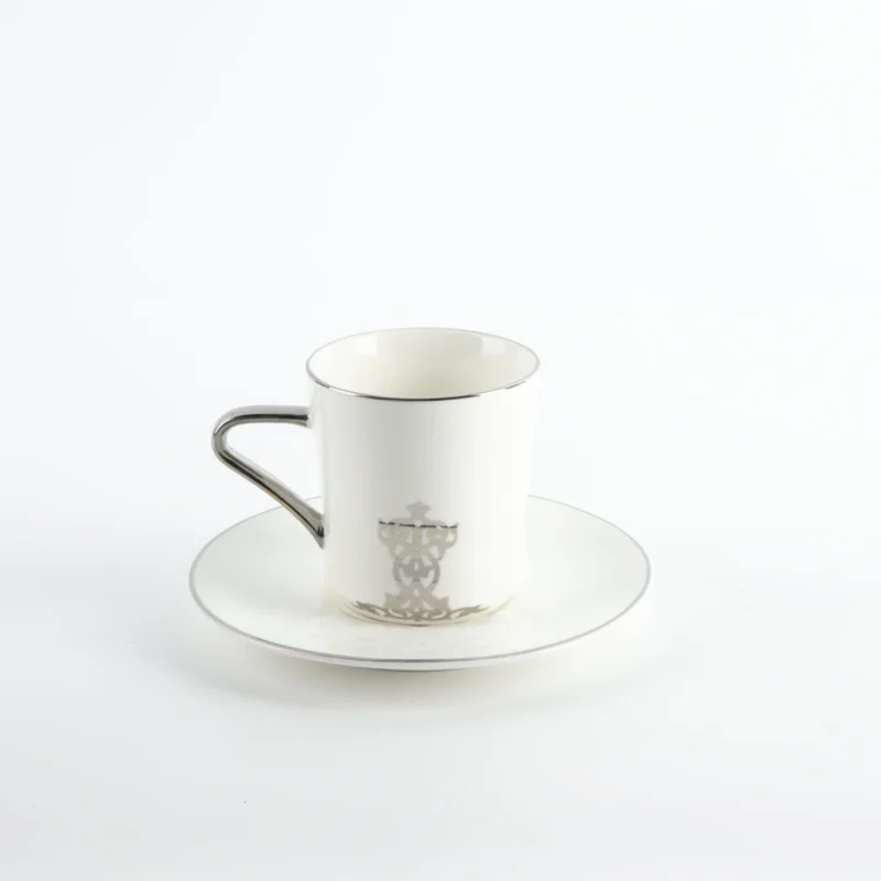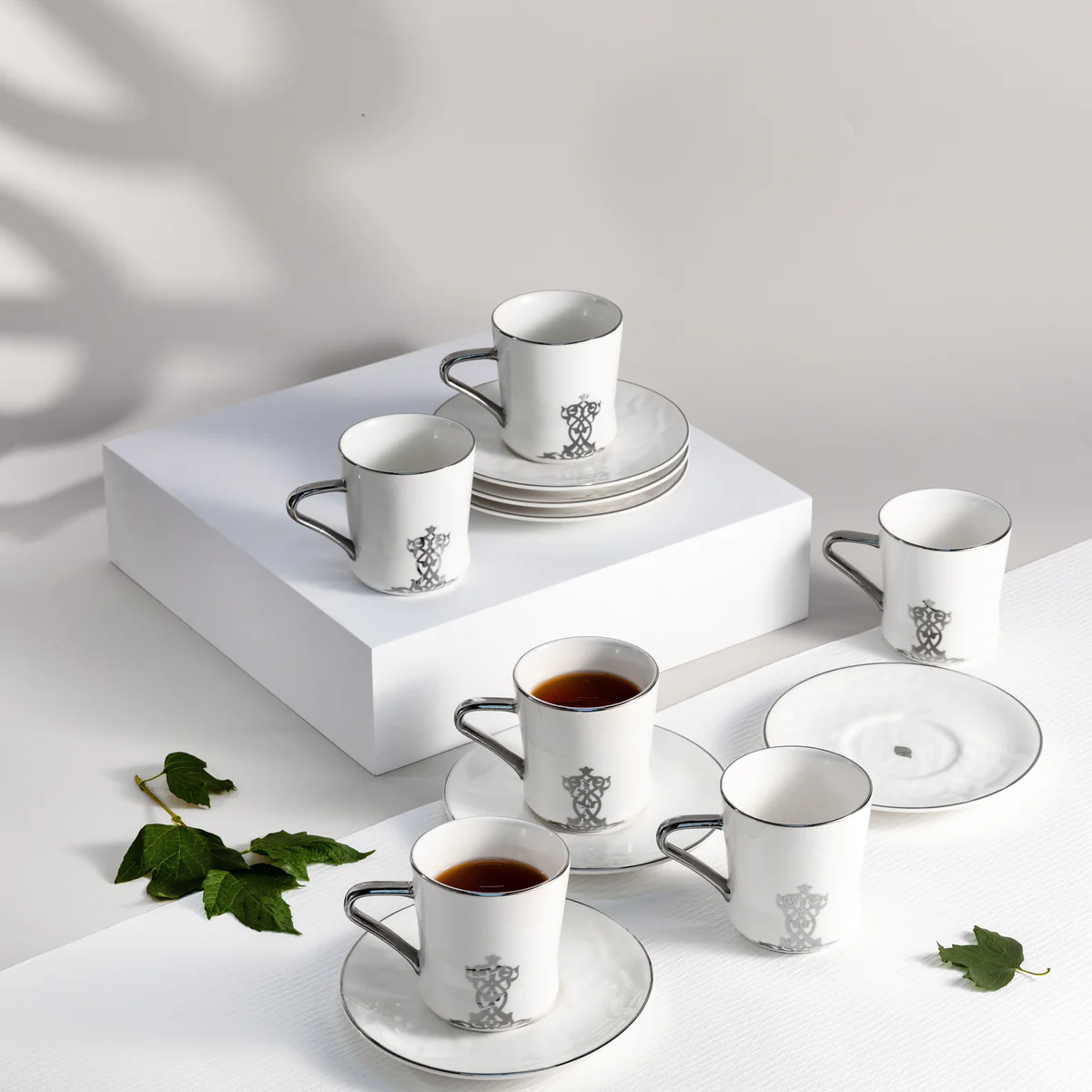 Conjunto de Xícaras de Porcelana com 12 peças – Branco e Prata