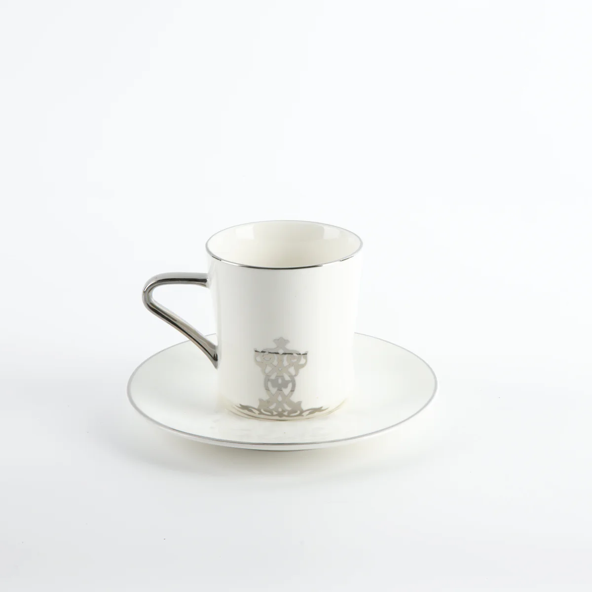 Conjunto de Xícaras de Porcelana com 12 peças - Branco e Prata